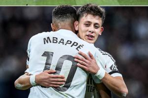 体育资讯11月27日讯 欧冠联赛阶段第5轮,姆巴佩大四喜,皇马4-3战胜奥林匹亚科斯。