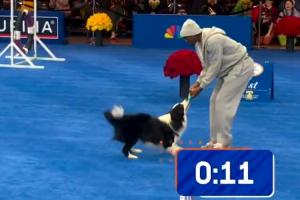 比赛中,马克西与两只狗狗的配合不太顺畅,逗乐了现场的观众朋友们。