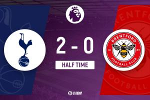 半场-热刺暂2-0布伦特福德 西蒙斯传射里沙利松破门