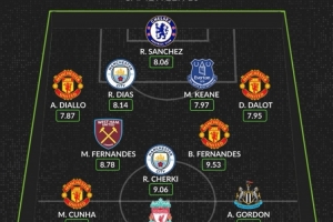 后卫: 阿玛德(曼联)、迪亚斯(曼城)、基恩(埃弗顿)、达洛特(曼联)