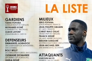 前锋:瓦科安·巴约(乌迪内斯)、奥马尔·迪亚基特(色拉格布鲁日)、阿玛德·迪亚洛(曼联)、扬·迪奥曼德(RB莱比锡)、阿莱(乌德勒支)、菲利普·克拉索(巴黎FC)、巴祖马纳·图雷(霍芬海姆)、扎哈(夏洛特FC)
