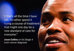 对于的自己的病情,科林斯表示:因为我的肿瘤无法切除,平均预期寿命只剩下11到14个月。