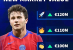12月15日德转即将更新法甲球员身价,德转官方为若昂-内维斯最新身价预热,最低9500万欧,最高可上涨至1.2亿欧元。
