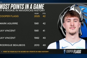 独行侠队史新秀单场得分榜: