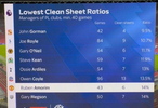 阿莫林执教曼联43场英超,只有6场零封……在执教40场以上的英超教练里倒数第七。