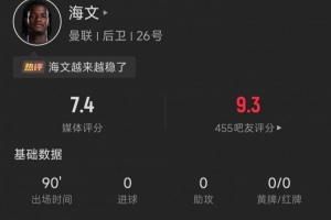 体育资讯12月27日讯 今天凌晨,曼联在英超联赛1-0击败纽卡斯尔,以下为曼联年轻后卫海文本场比赛的数据。