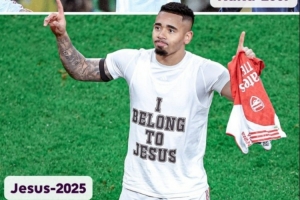 这也是热苏斯伤愈复出后打进的首球,进球后他也脱衣庆祝,做出与昔日卡卡同样的双手指天动作,印字也均是“我属于上帝”。
