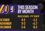 😢赛季开始三个月,湖人战绩和场均净胜分变化: