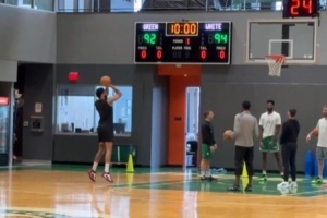 体育资讯11月15日讯 据绿军随队记者Daniel Donabedian报道,绿军球星塔图姆今日回到了凯尔特人训练馆,并进行了简单的投篮训练。