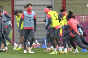 “约书亚·基米希和塞尔日·格纳布里进行个人训练,贾马尔·穆西亚拉则继续完成康复训练。其余球员均参与合练——包括归队的伊藤洋辉和阿方索·戴维斯,还包括周二晚间仍在纽约代表哥伦比亚出战的路易斯·迪亚斯。”