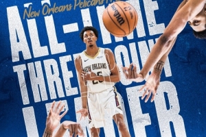 鹈鹕官方晒出照片,祝贺墨菲登顶队史三分命中数第一的宝座!榜单具体如下: