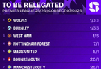 据Opta的统计,本赛季英超降级概率为: