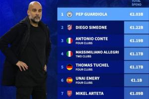 断层领跑!瓜帅入主曼城后引援已花超20亿欧,领先第2西蒙尼8亿