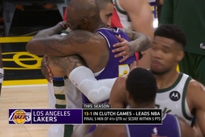 这是湖人本赛季第14次经历关键时刻(最后5分钟分差5分以内)的比赛,此前他们13场全胜,今天不败金身被破。