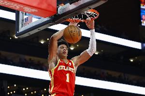 GIF-杰伦·约翰逊封盖霍金斯,随后一条龙完成滑翔暴扣